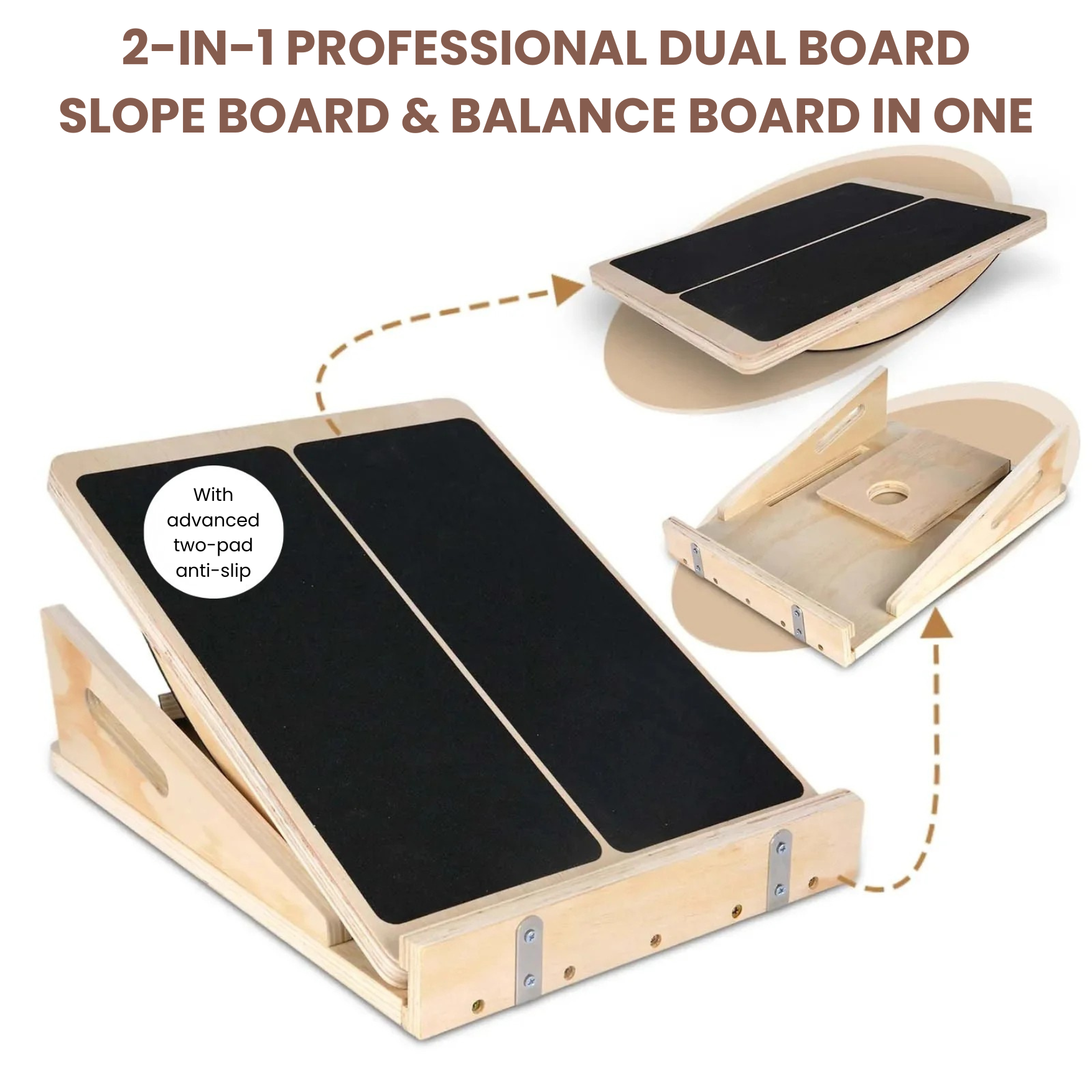 Most boards are either a slant board or a balance board. The Dual Yoga Board combines both functions in one smart design – something you won't find with competitors.
